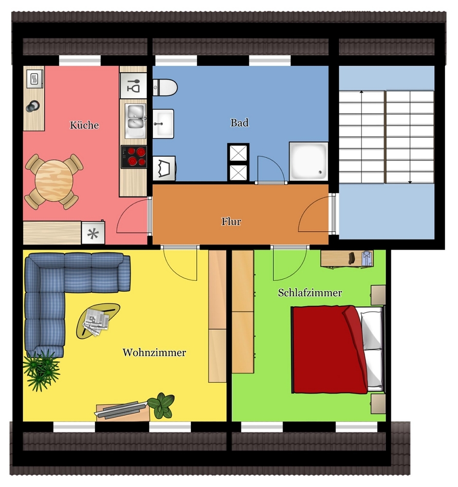 Die Wohnung befindet sich im Dachgeschoss eines Mehrfamilienhauses.