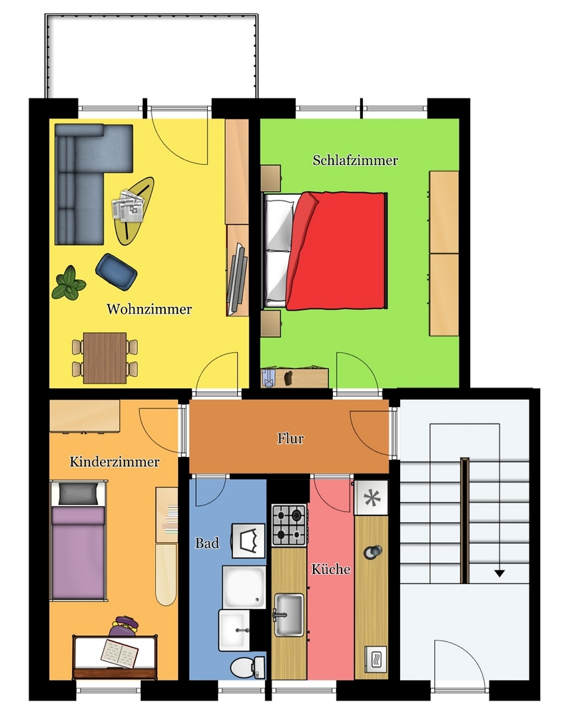 Die Wohnung befindet sich im 4. Obergeschoss eines Mehrfamilienhauses. Das Gebäude wurde im Jahr 1998 vollständig saniert und besitzt bereits eine Außendämmung. Auf dem dazugehörigen Grundstück finden Sie einen Wäscheplatz. Auf dem nahe gelegenen Parkplatz können Sie Ihren PKW kostenfrei parken oder einen Stellplatz mit Poller direkt vor der Haustür anmieten.
